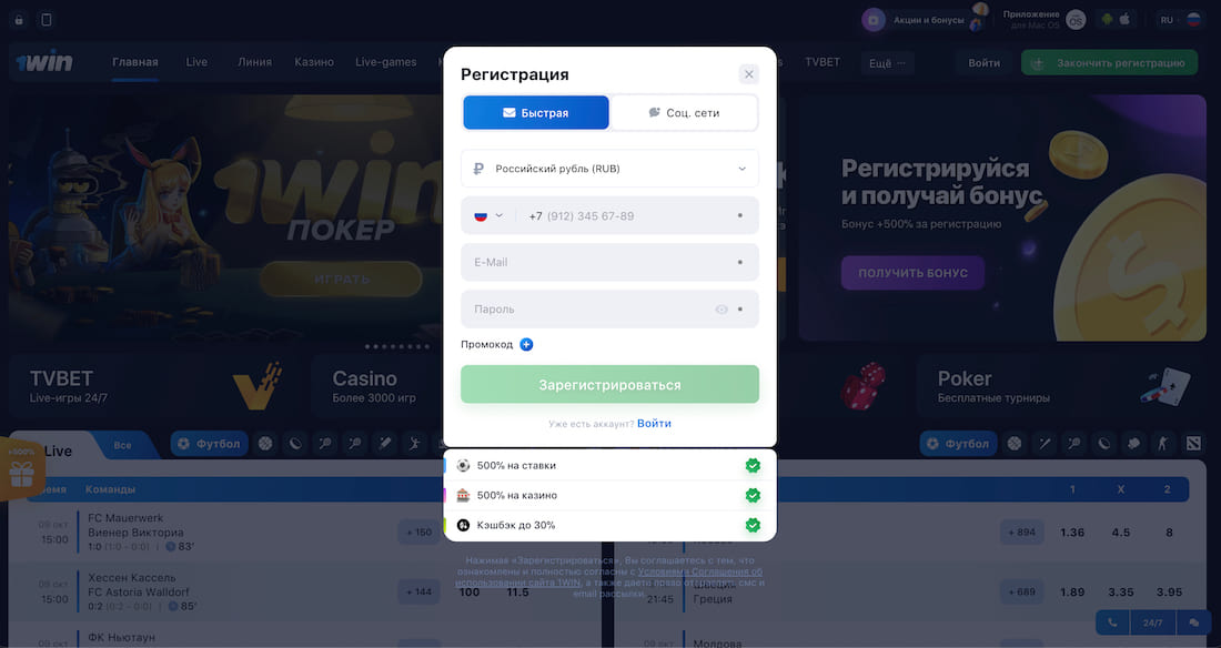 Для создания аккаунта на официальном сайте 1 Win выполните следующие действия: